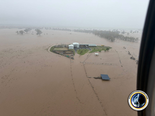 An inundated Lily Flats, 5km South of Clermont on Monday, 12 January. (Bush Heli-Services/Higgins Storm Chasing)